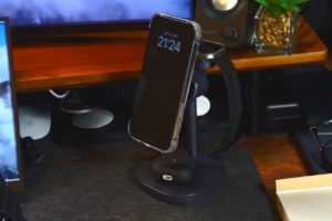 肝心の使い勝手はまさに「置くだけ」の簡単さが際立ちますね。MagSafe対応iPhoneであれば充電エリアに近づけるだけで磁力でカチッと引っ付く。Qiと違って位置合わせに神経を使う必要がない。片手でも確実に設置できる手軽さは日常使いにおいて大きなアドバンテージです。
